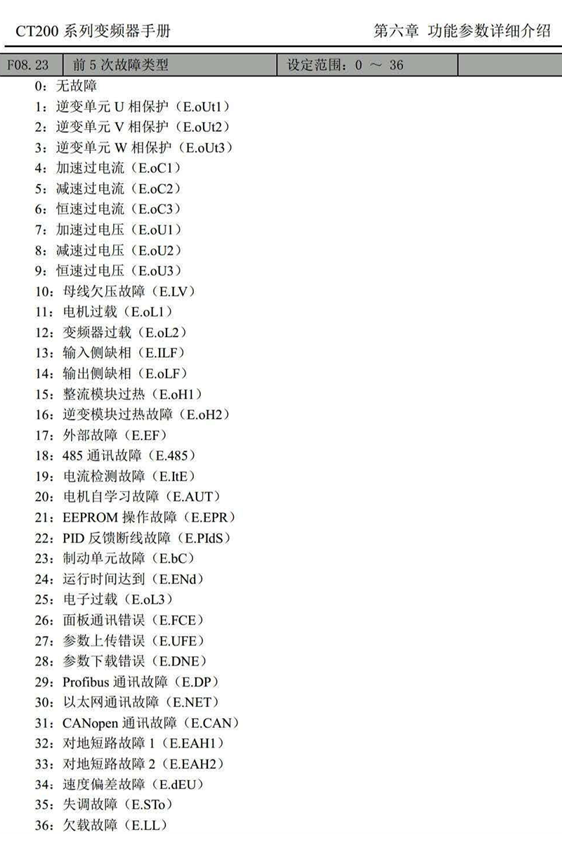 注:變頻器故障原因及對(duì)策見變頻器用戶手冊(cè)
